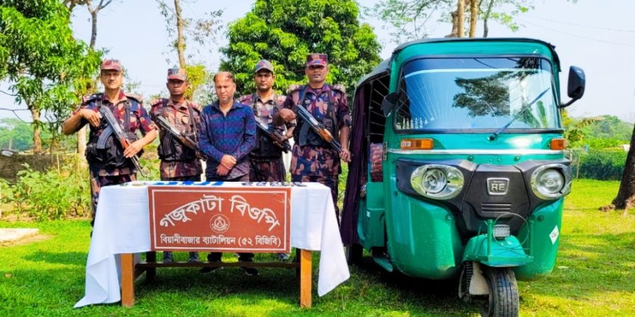 বৈশাখী নিউজ ডেস্ক: সিলেট সীমান্তে ৩০ লক্ষাধিক টাকার ইয়াবাসহ মাদকসম্রাট আসলাম হোসেন (৪০) কে গ্রেপ্তার করেছে বিয়ানীবাজার ব্যাটালিয়ন (৫২ বিজিবি)। এসময় অবৈধভাবে বহনকারী সিএনজি (অটোরিকশা) আটক করা হয়।