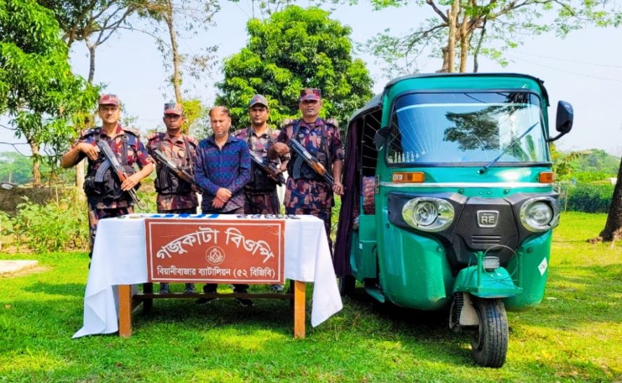 জানা যায়, গোপন সংবাদের ভিত্তিতে বিয়ানীবাজার ব্যাটালিয়ন (৫২ বিজিবি) এর অধীনস্থ গজুকাটা বিওপি কমান্ডার এর নেতৃত্বে বিয়ানীবাজার থানার গহেলাপুর প্রথম ব্রিজ (জামালের বাড়ীর সামনে) নামক স্থানে অভিযান পরিচালনা করার সময় ৫জন যাত্রীবহনকারী সিএনজি (অটোরিকশা)’র গতিবিধি সন্দেহ হয়। এসময় সিএনজিকে থামানোর সিগন্যাল দিলে তারা গাড়ি রেখে পালানোর চেষ্টা করে। এসময় ধাওয়া করে আসলাম হোসেনকে গ্রেপ্তার করে বিজিবি।