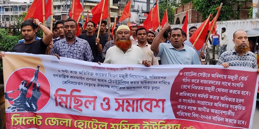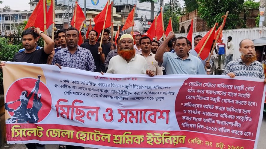 শ্রমিকনেতার মুক্তির দাবিতে সিলেটে হোটেল শ্রমিকের বিক্ষোভ