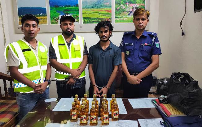 জৈন্তাপুরে ভারতীয় মদসহ যুবক আটক