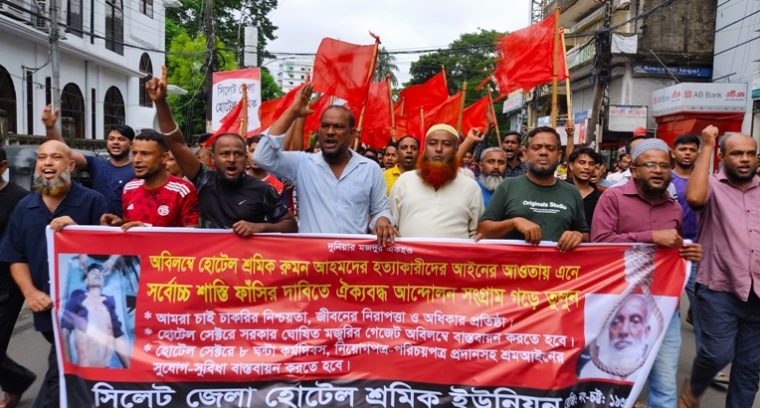 শ্রমিক হত্যার প্রতিবাদে সিলেটে হোটেল শ্রমিক ইউনিয়নের বিক্ষোভ