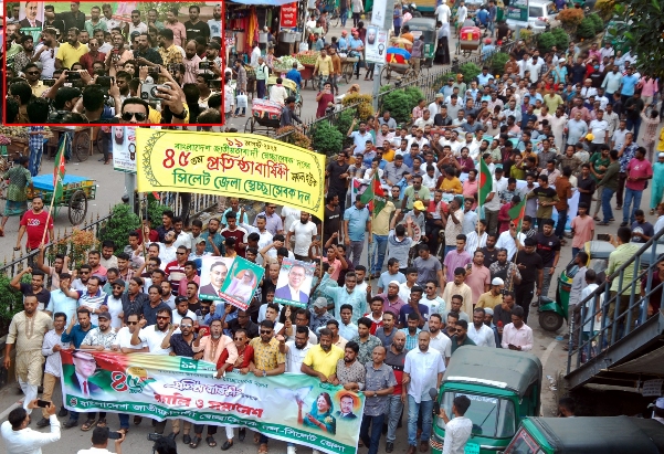 রেজিস্টারী মাঠে র্যালী পূর্ব সমাবেশে সভাপতিত্ব করেন সিলেট জেলা স্বেচ্ছাসেবক দলের আহবায়ক আব্দুল আহাদ খান জামাল। সিলেট জেলা স্বেচ্ছাসেবক দলের সদস্য সচিব শাকিল মুর্শেদের পরিচালনায় অনুষ্ঠিত সমাবেশে বক্তব্য রাখেন সিলেট জেলা স্বেচ্ছাসেবক দলের সিনিয়র যুগ্ম আহবায়ক মিফতাহুল কবির মিফতা, যুগ্ম আহবায়ক আলী মো: নুরুল হুদা দিপু, দেলোয়ার হোসেন চৌধুরী, সৈয়দ সরওয়ার রেজা, কায়সান মাহমুদ সুমন, টিটন মল্লিক, জাহাঙ্গীর মিয়া। সভার শুরুতে পবিত্র কোরআন থেকে তেলাওয়াত করেন দক্ষিণ সুরমা উপজেলা স্বেচ্ছাসেবক দলের সদস্য সচিব নুরুল আমিন।