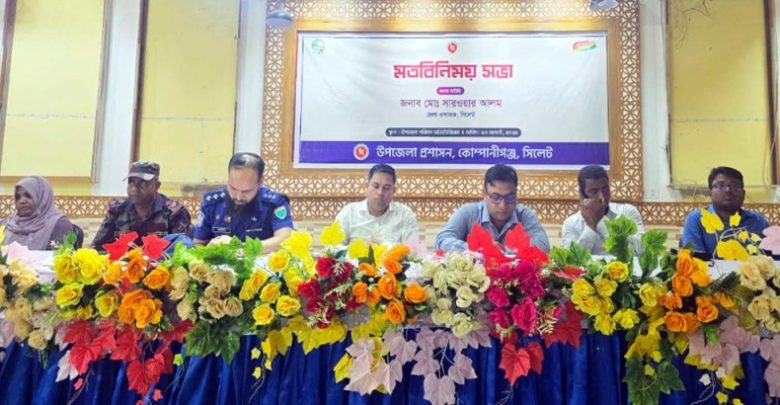 কোম্পানীগঞ্জ উপজেলা পরিষদ হলরুমে অনুষ্ঠিত মতবিনিময় সভায় প্রধান অতিথি হিসেবে উপস্থিত ছিলেন- সিলেটের অতিরিক্ত জেলা প্রশাসক (সার্বিক) পদ্মসন সিংহ।