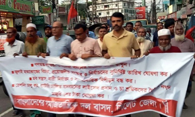 সিলেট জেলা বাসদ আহ্বায়ক আবু জাফর এর সভাপতিত্বে ও জেলা সদস্য সচিব প্রণব জ্যোতি পাল এর সঞ্চালনায় বিক্ষোভ সমাবেশে অন্যান্যের মধ্যে উপস্থিত ছিলেন ও বক্তব্য রাখেন বাসদ জেলা সাবেক আহ্বায়ক উজ্জ্বল রায়,চারণ সাংস্কৃতিক কেন্দ্রের আহ্বায়ক নাজিকুল ইসলাম রানার, সমাজতান্ত্রিক শ্রমিক ফ্রন্ট সহ সভাপতি বেলাল হোসেন,সিমান্ত রায়, জাহেদ আহমদ সংগ্রাম পরিষদের খায়ের আহমদ, হোসেন আহমদ,মাজেদ আহমদ প্রমূখ।