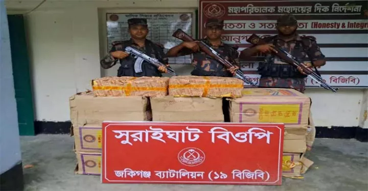 এ ছাড়া শনিবার (১৩ সেপ্টেম্বর) ভোরে জৈন্তাপুর, গুয়াবাড়ী ও সুরাইঘাট বিওপি’র যৌথ টহলদল জৈন্তাপুর ও কানাইঘাট উপজেলার সীমান্ত এলাকায় অভিযান চালায়। এ সময় মালিকবিহীন অবস্থায় ভারতীয় ৫টি গরু, ৭২ হাজার ২০০ পিস সুপারি, ৮ হাজার ১২০ প্যাকেট পাতার বিড়ি, ৬০০ কেজি ফুলের ঝাড়ু ও ২টি কাঠের নৌকা জব্দ করা হয়। এসব মালামালের সিজারমূল্য ধরা হয়েছে ১৭ লাখ ৬ হাজার টাকা।