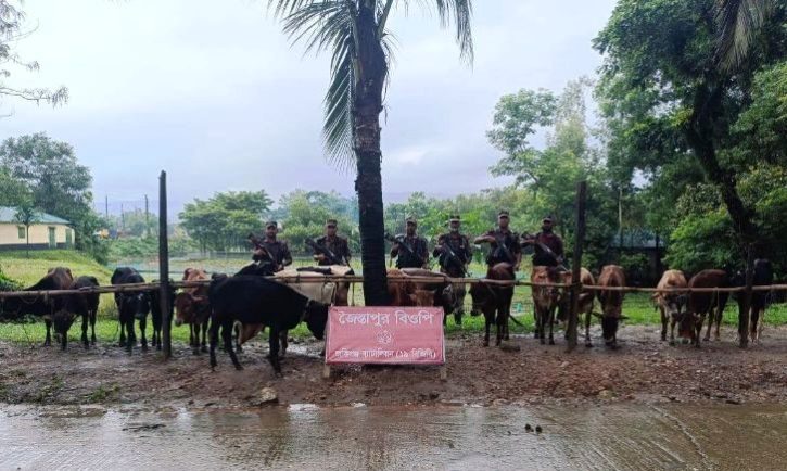 বিজিবি জানায়, সিলেট সেক্টরের অধীনস্থ জকিগঞ্জ ব্যাটালিয়নের (১৯ বিজিবি) দায়িত্বাধীন জৈন্তাপুর সীমান্তের শূন্য লাইন থেকে ৫০০ গজ বাংলাদেশের অভ্যন্তরে ঘিলাতৈল নামক স্থানে একটি বিশেষ অভিযান পরিচালনা করে। উক্ত অভিযানে বিজিবির টহল দল মালিকবিহীন অবস্থায় ভারতীয় গরু ১৮ টি আটক করে। আটককৃত গরুর আনুমানিক বাজারমূল্য ১২ লাখ টাকা।