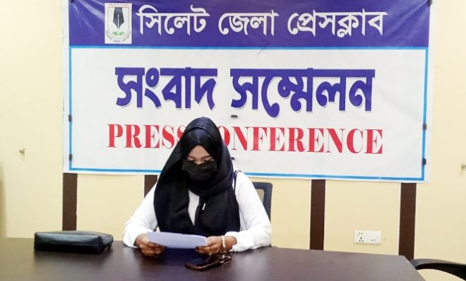 শনিবার (২৫ অক্টোবর) বিকাল ৩টায় সিলেট জেলা প্রেসক্লাবে সংবাদ সম্মেলন করে এ অভিযোগ করেন সিলেটের দক্ষিণ সুরমা উপজেলার মোগলাবাজার থানাধীন খালেরমুখ এলাকার ডুংশ্রী গ্রামের মো. বাবুল মিয়ার মেয়ে মোছা. লিমা বেগম নুসরাত (২৬)।