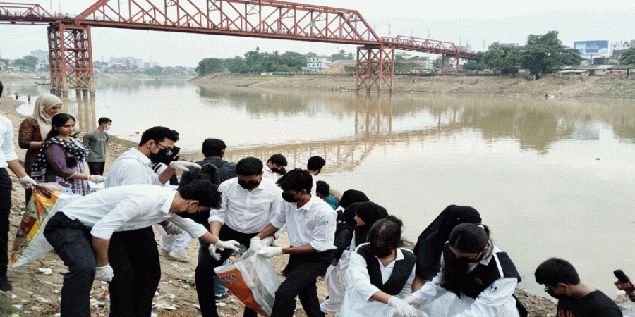 সুরমা নদীর তীরে স্কুল শিক্ষার্থীদের পরিচ্ছন্নতা অভিযান