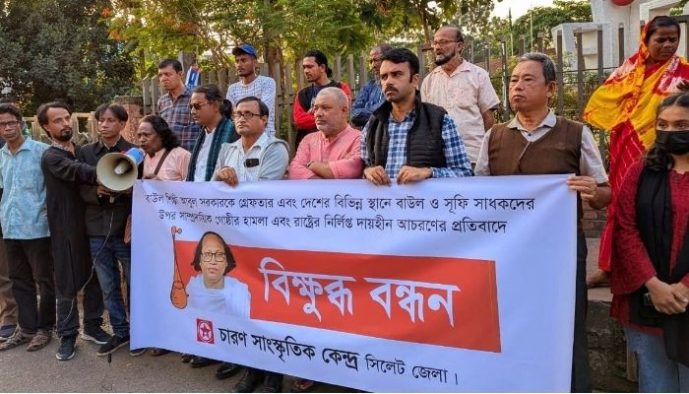 বৈশাখী নিউজ ডেস্ক: বাউল শিল্পী আবুল সরকারকে গ্রেপ্তার ও দেশের বিভিন্ন স্থানে বাউল ও সূফি সাধকদের ওপর হামলার প্রতিবাদে সিলেটে বিক্ষুব্ধ মানববন্ধন অনুষ্ঠিত হয়েছে।