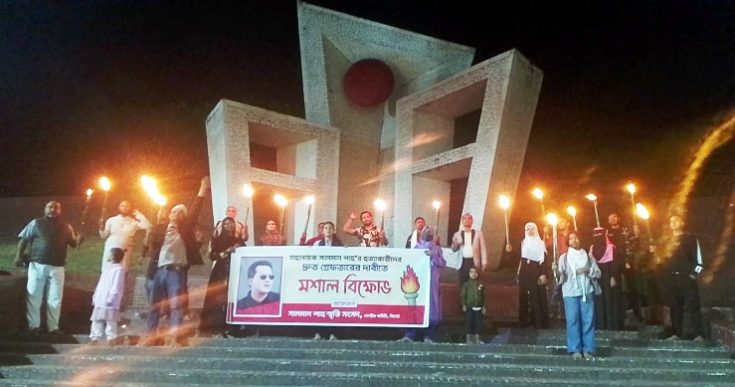 সালমান শাহ’র হত্যাকারীদের দ্রুত গ্রেপ্তারের দাবীতে সিলেটে মশাল বিক্ষোভ