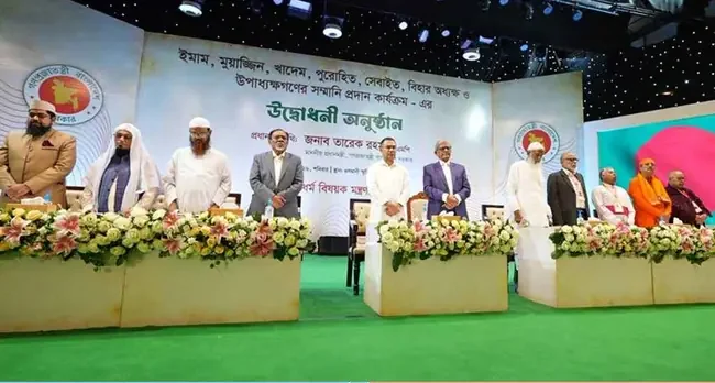 বৈশাখী নিউজ ডেস্ক: দেশের ধর্মীয় সম্প্রীতি ও সামাজিক নিরাপত্তার এক অনন্য মাইলফলক হিসেবে ইমাম, মুয়াজ্জিন এবং বিভিন্ন ধর্মের ধর্মীয় নেতাদের সরকারি সম্মানী প্রদান কার্যক্রমের উদ্বোধন করেছেন প্রধানমন্ত্রী তারেক রহমান।