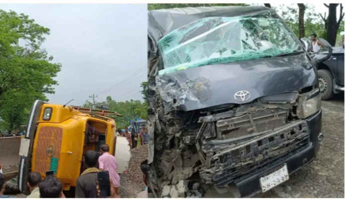 জৈন্তাপুরে ট্রাক-মাইক্রোবাসের মুখোমুখি সংঘর্ষ, চালকসহ আহত ৩